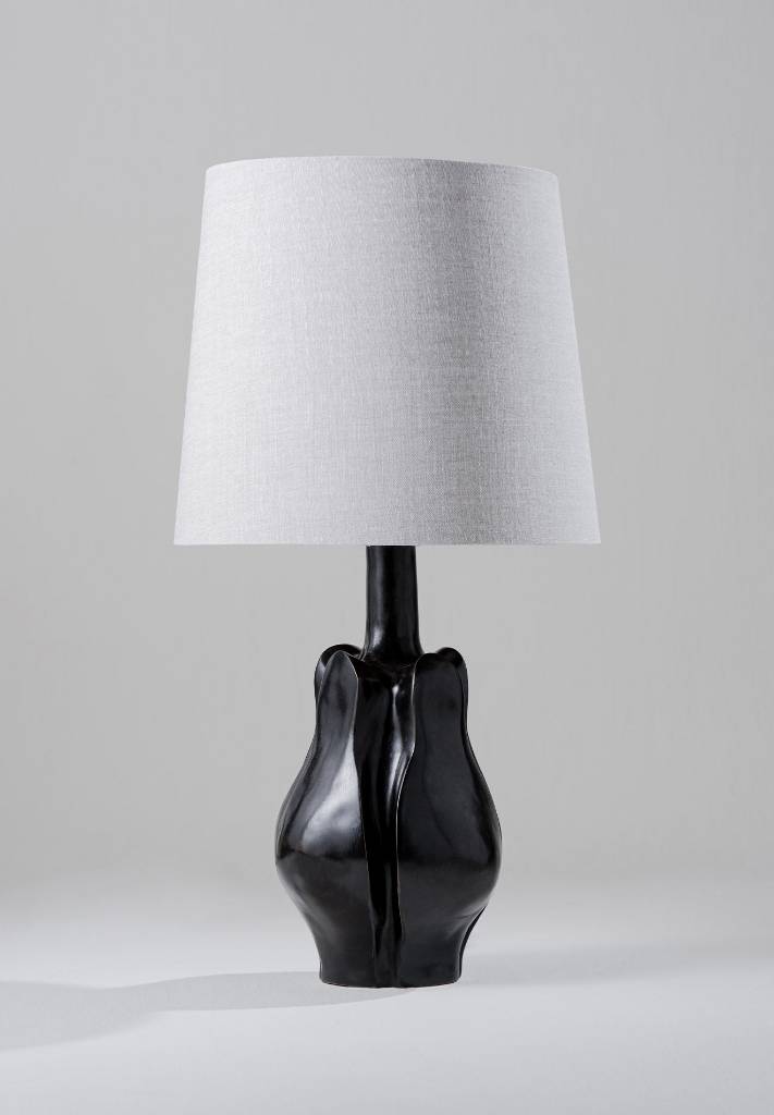 The Cordelia lamp is a sculpted form, symbolising the union of animate and inanimate objects in nature. From one perspective, the opening of a flower and from another, four silhouettes of human form. Constructed from cast composite and available in Bronzé or Drift White.