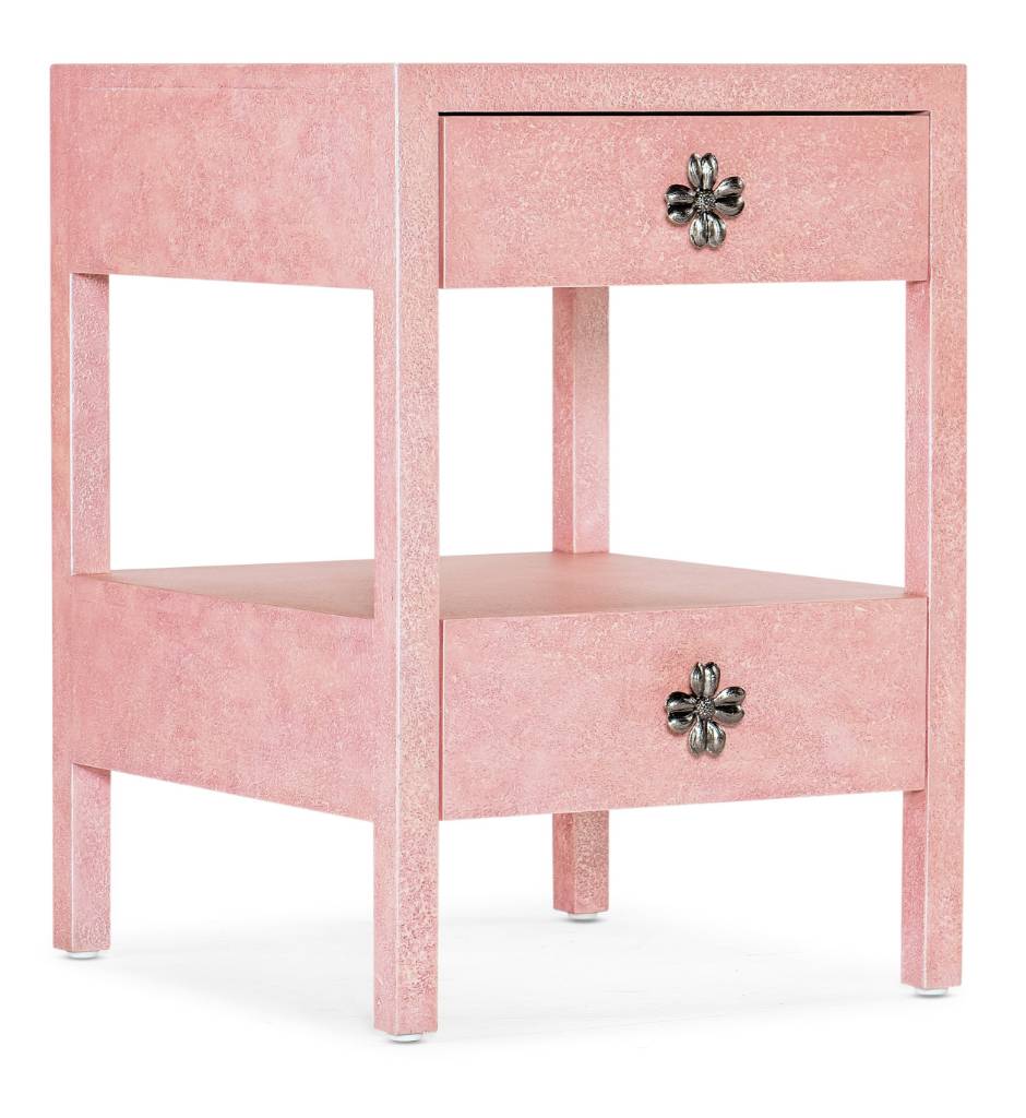 Finish: Pink textured finish with antique pewter colored custom flower designed hardware