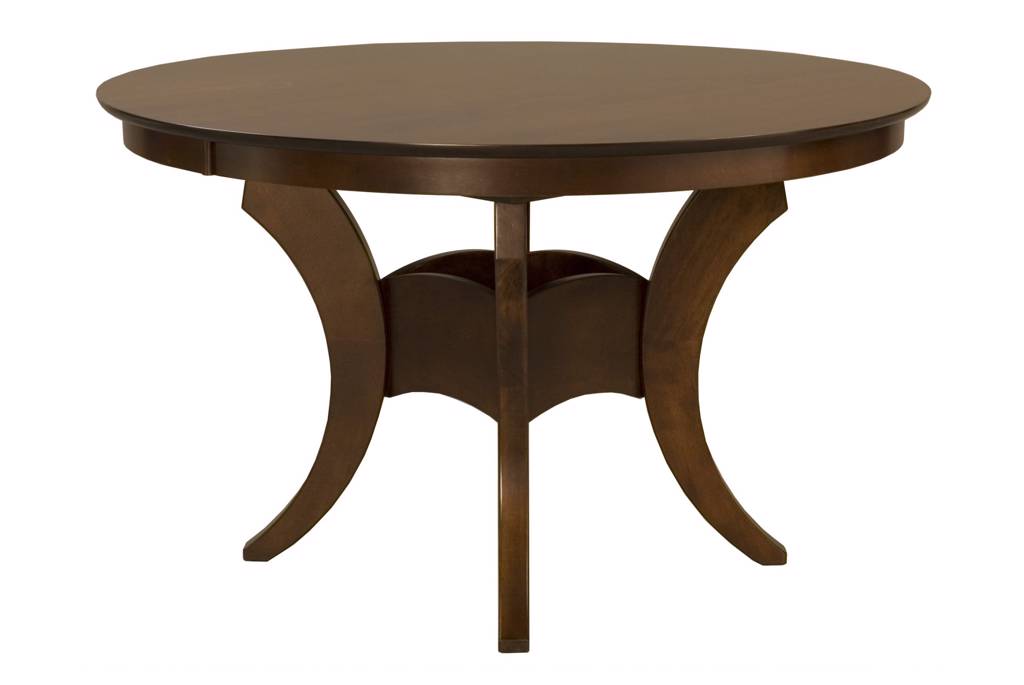 A curving pedestal dining table featured in the Saloom New England Collection