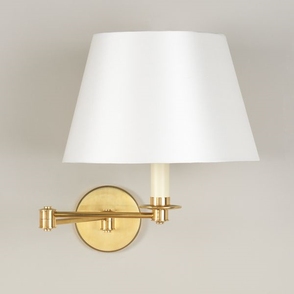 This wall light is defined by its simple design and adjustable arm. The knurling around the edge of the backplate adds an elegance and subtle finish to the light.Brass (2 Arm)