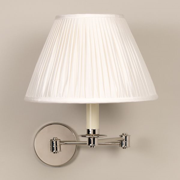 This wall light is defined by its simple design and adjustable arm. The knurling around the edge of the backplate adds an elegance and subtle finish to the light.Nickel (2 Arm)