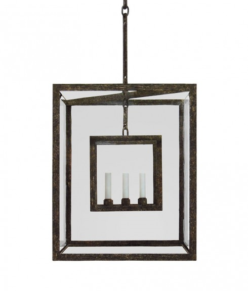 20”d x 20”w x 24½”hthree lights u.l. approved for indoor use 40w bulbs recommended clear glass panelscustom sizes available50 lbsantique ironhand forged patterned iron and clear glassADDITIONAL CHAIN FOR CUBIC LANTERNF-CD09CH