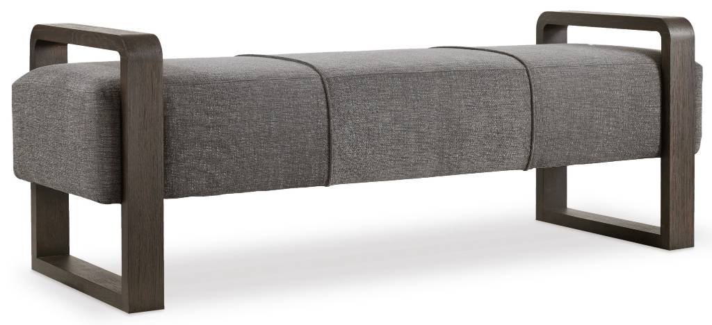 Product Description: Chic, modern and inviting, the graphite gray upholstered seat of the Curata bench appears to be floating between the softly rounded rectangle ends finished in the deep brown Midnight.