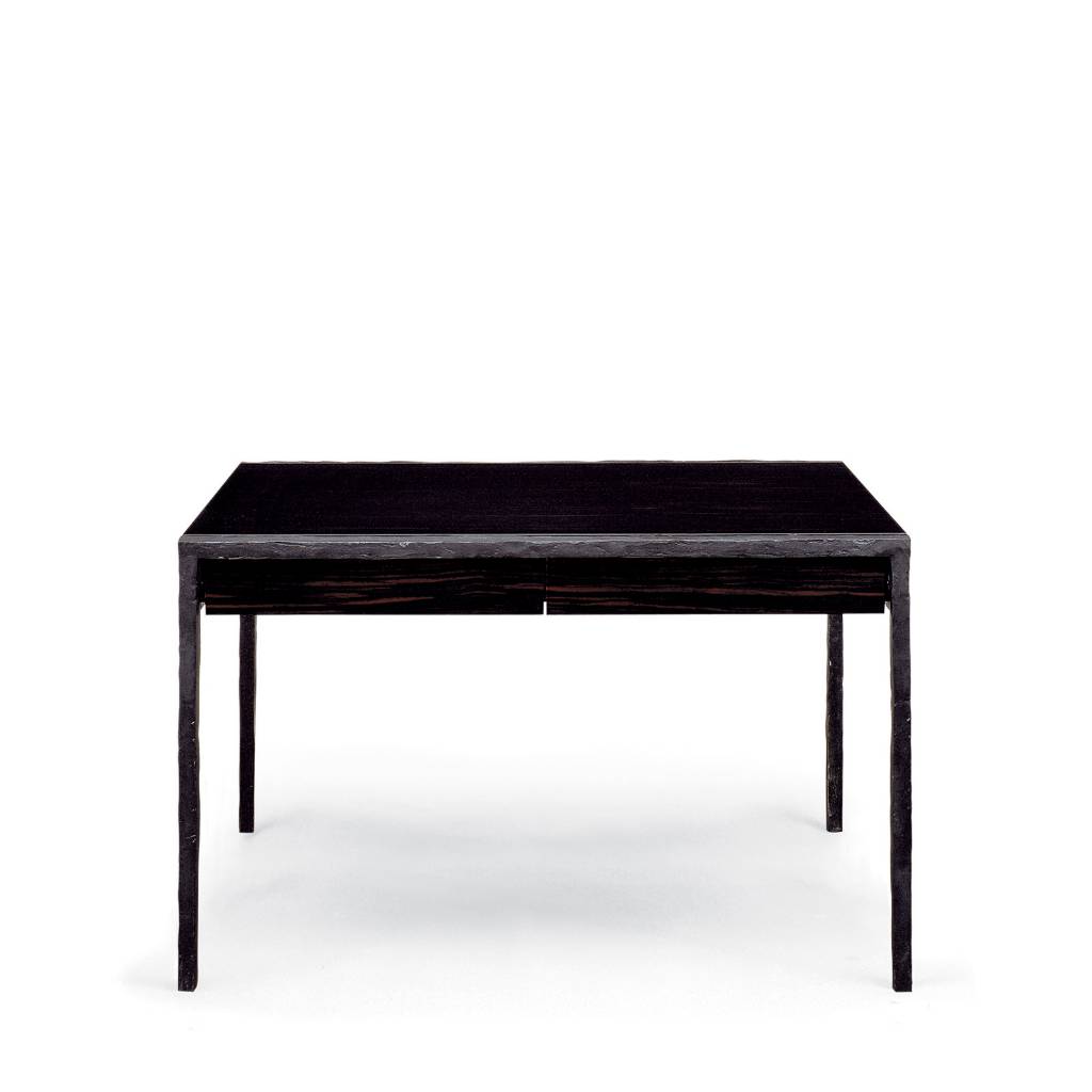 The Bartholoméo desk combines design and function by juxtaposing bronze, wood and tulle finish options. The Bartholoméo desk includes two drawers.