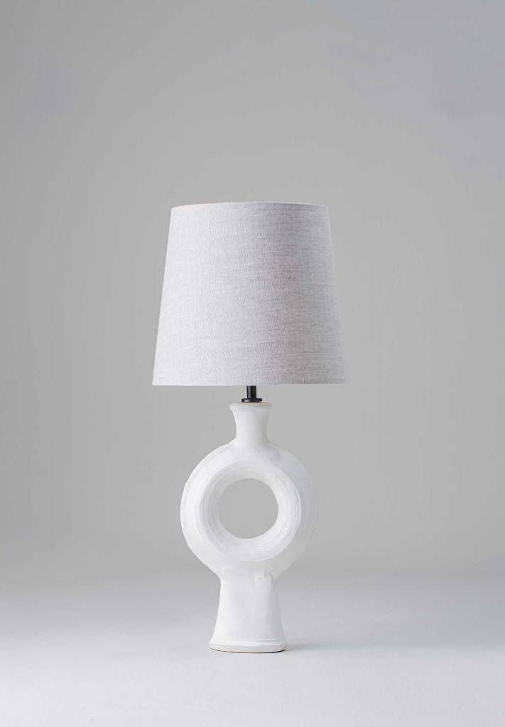 The Dougal Lamp is a small ceramic piece designed by revered British studio potter Dylan Bowen. The grooves and curves of the Dougal catch the glaze to give the piece a soft mottled surface.