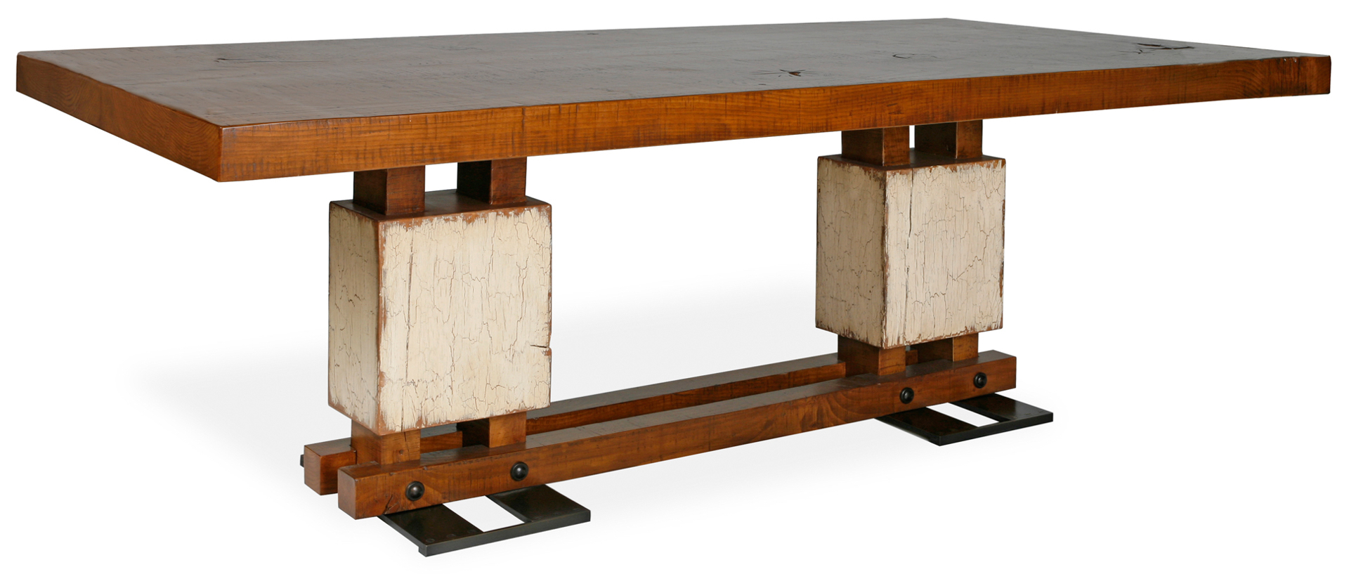 A reinterpretation of an antique French original by Dupre in MLI's easier, more organic vocabulary. The lean pedestal bases and bronze feet allow for easy chair access. Any size or finish available. Also great as a console.