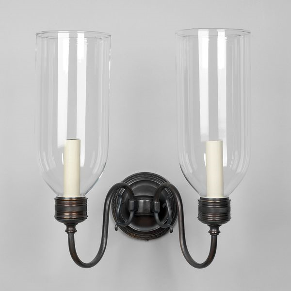 Designed in the spirit of an 18th century storm candle light, this wall light is defined by its swan neck arms and the knurling detail on both the backplate and cup.Bronze (2 Arm)
