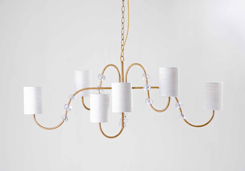 The Emile ceiling light is a minimalistic interpretation of the wavy movements of water. Enriched by delicate pieces of glass, which are equally positioned along the gentle curves.