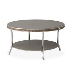 The Essence 33" Round Cocktail Table with Taupe Glass is available in 20 custom Lloyd Loom® finishes.