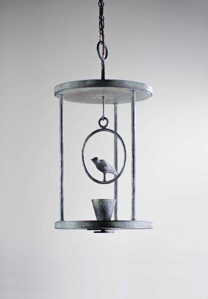 The Etienne Lantern takes much of its inspiration from the designs of Diego Giacometti. The bird that perches on the ledge is lit from below and is illuminated to resemble a small-scale sculpture.