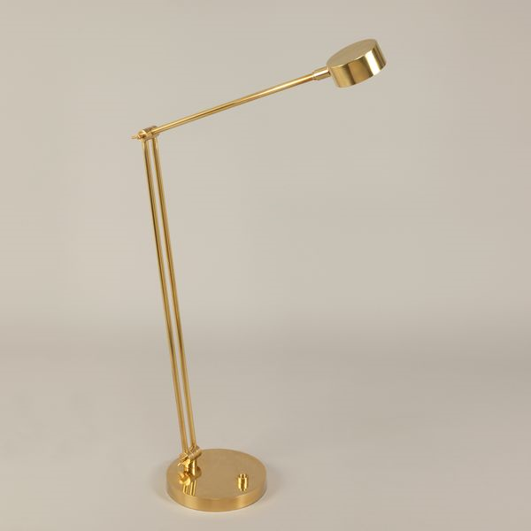This floor lamp is elegant and versatile. The stem, arm and shade can all be angled and adjusted in varying positions. Details, like the button on the base, are practical and stylish.