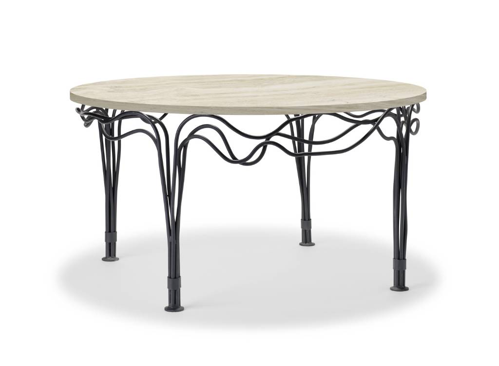 This is the dining table version of the Filo Console. It also features a base made out of free-form, individually bent pieces of metal that come together to make a sturdy and unique piece of furniture art. The Filo design also comes as side tables and an ottoman.