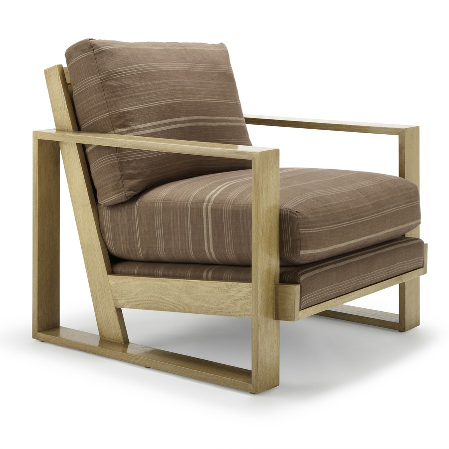 Linear – The French Art Deco Chair can fill a modern void in your Traditional Project. Deco style chair in oak with upholstered loose boxed seat and back cushions (25/75 down wrap) with blind seam or selt welt.