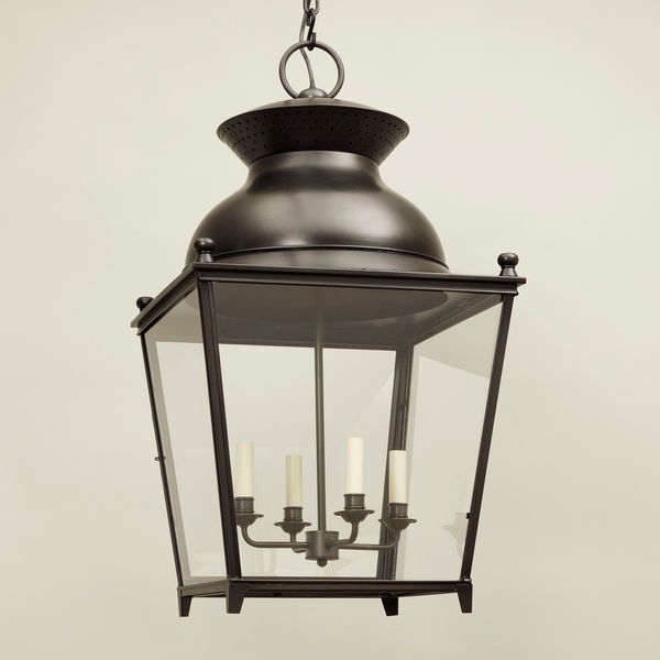 Inspired by an 18th century Parisian lantern, this design has a distinctive shaped hood and intricate pierced fretwork decoration. Suitable for covered external, IP23 rated.