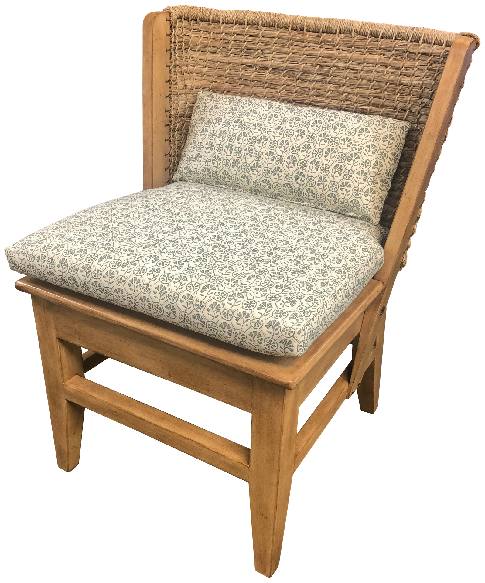 The little sister of our classic "Orkney Island" chair, this design features a lower profiled back and the ease of an armless dining chair. The back is fabricated of hand-woven and lPoplared natural sea grass in a centuries-old method. A variety of finishes is available at your request. Also available with arms.