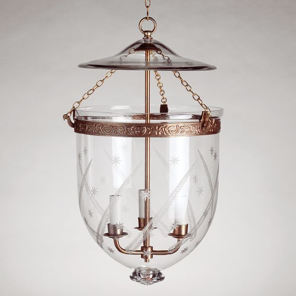 An early 19th century Regency ornament inspired this lantern. The handcrafted decorative details, in solid brass, are authentic of the period.
