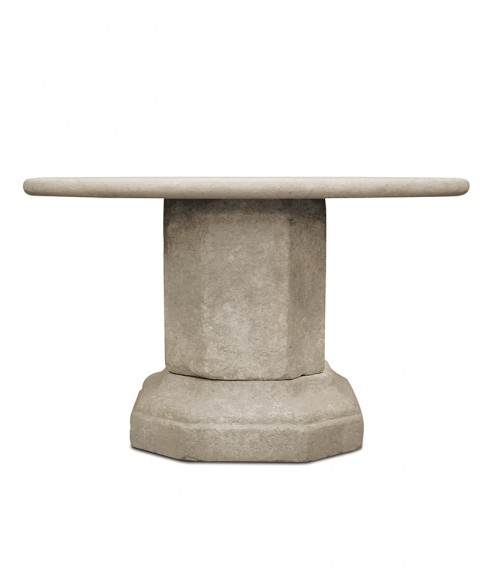dimensions at top: 17”d x 17”w x 28”h dimensions at base: 26”d x 26”wthree pieces a subtop is recommended when using this base with stone or wood tops greater than 48” dia ndoor/outdoorcannot be custom sized370 lbspatinated stonecast stone