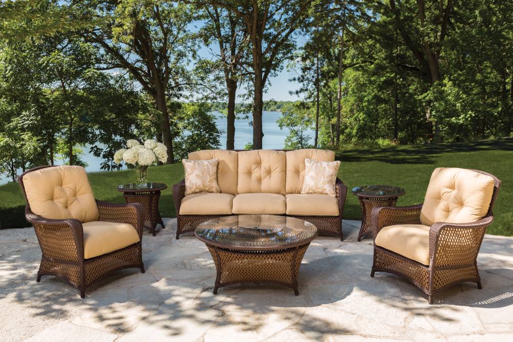 Crafted in our exclusive SunLoom vinyl, the Grand Traverse collection achieves lasting durability, ensuring endless seasons of comfort and conversations. Perfectly suited to the lanai, sun room, or front lawn, the Grand Traverse collection provides versatility to fit your lifestyle and adjust to the changing seasons in your life. Available in caramel or bisque.