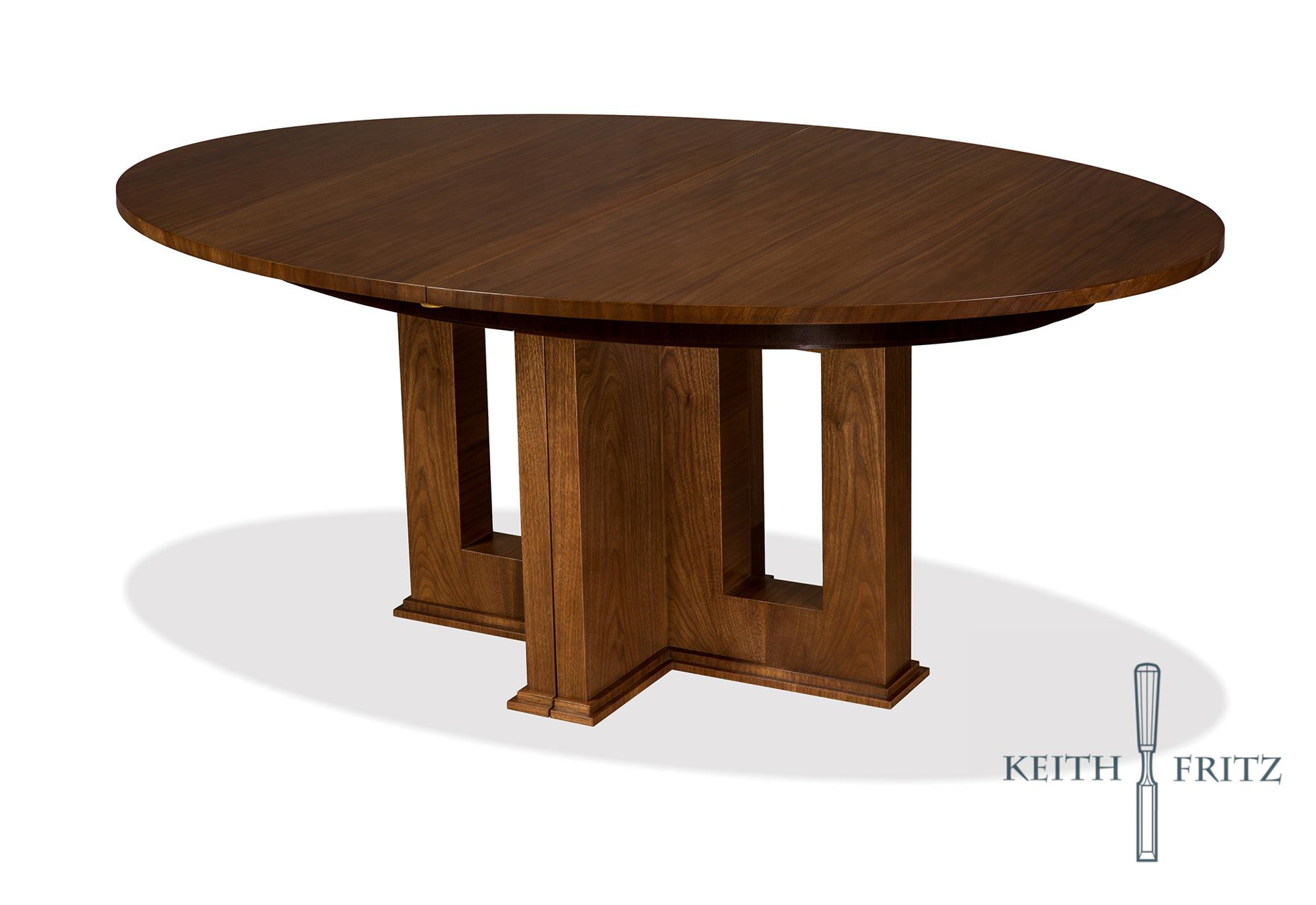 Available in all sizes and finishes. Shown here in hand planed walnut with optional extension leaf. A smaller version of this design is the Hagen Minor.