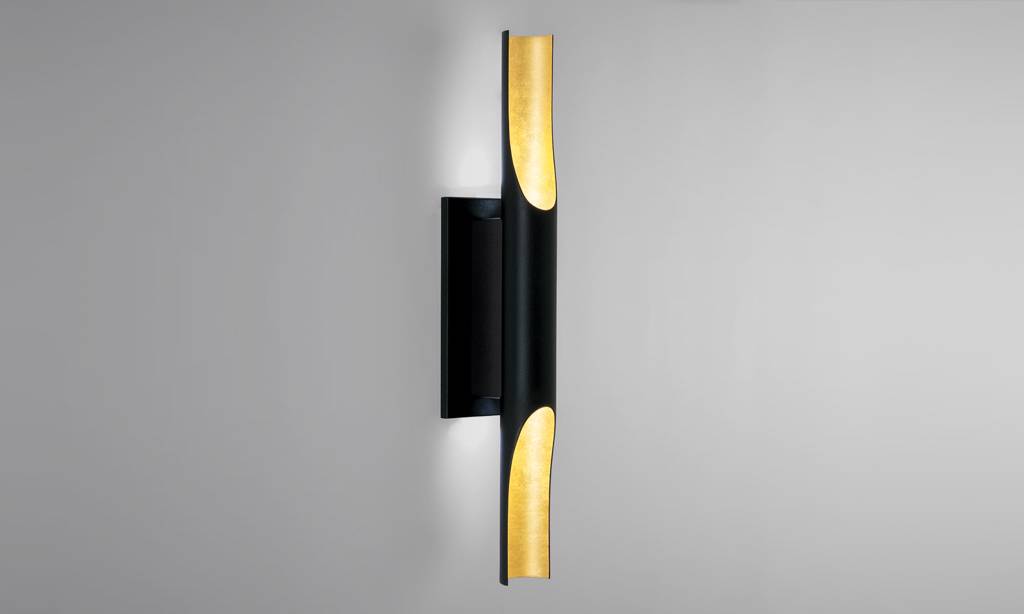 Inspired by neo-modernist fixtures of the French Art Deco period, Halfpipe provides a beautiful LED illumination that washes light up and down the wall. ADA compliant for use in commercial or hospitality spaces. Available in two powder coat options and two hand-applied gold leaf options. Patent Design: D646,426.