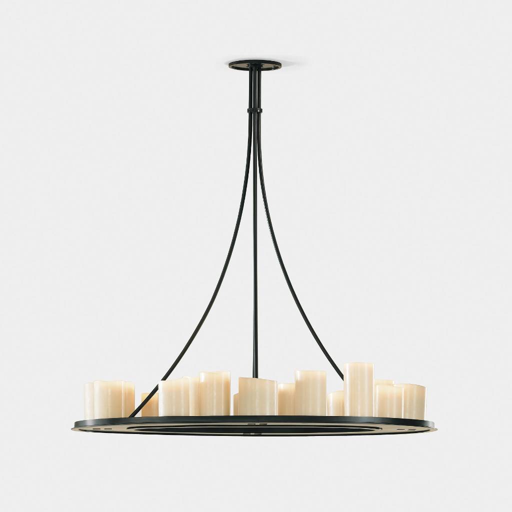 Hemel is the Dutch word for “sky,” and Kevin Reilly’s hanging lamp of the same name delivers a sky (or ceiling) view via a circular tray that’s open in the center. Inspired by fixtures seen in 1930s and ’40s films, this handsome chandelier incorporates 9 to 21 of the designer’s patented carved wax electrified candles, and is handcrafted in his Montgomery, Alabama studio. Available in six standard sizes with customization options, for indoor and outdoor use.