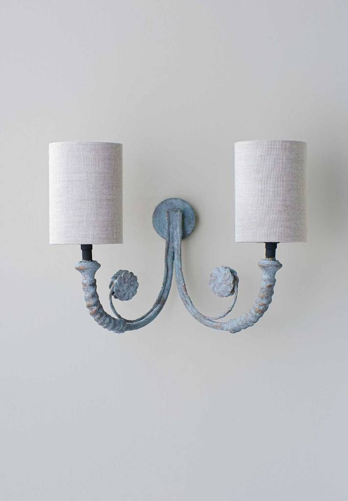 The Holbein large wall light is inspired by classical 18th century design and finished in a delicately painted Blue Verdigris simulating centuries of age.
