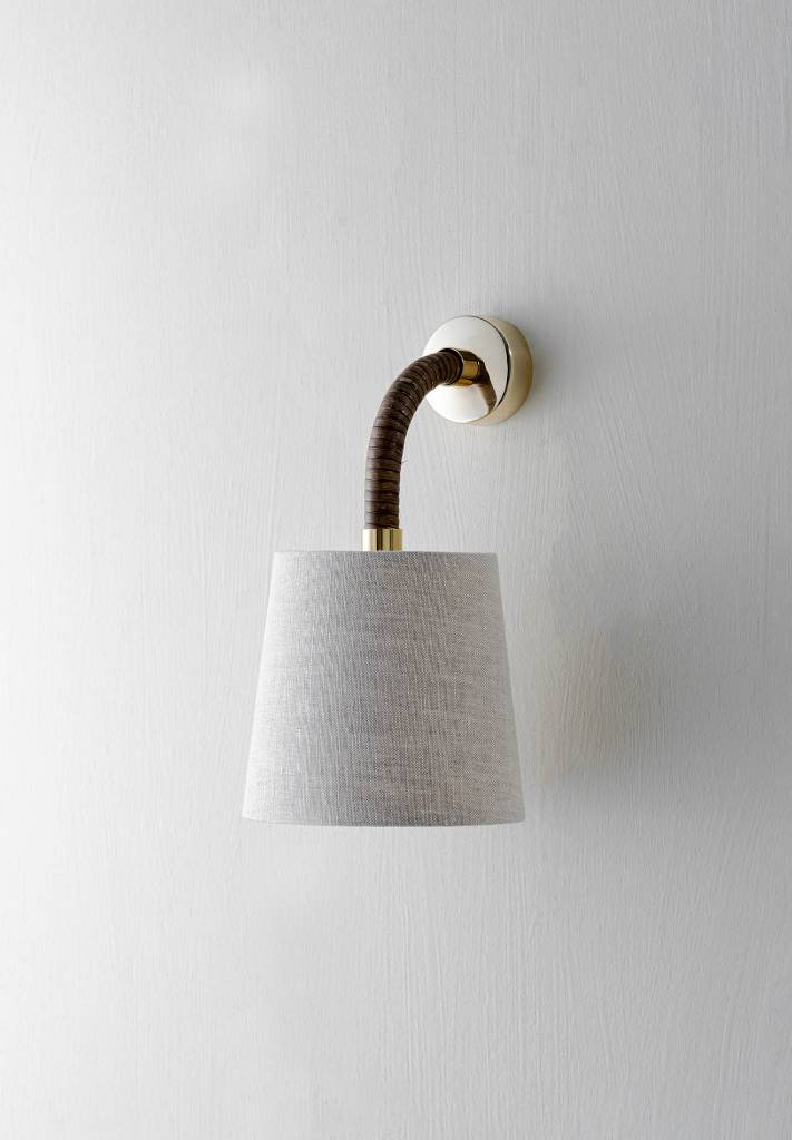 Characterised by its natural unique patination and colouring, the Holden pieces are made from hand wrapped strips of cane. This family of pieces combined with Brass or Antiqued Brass fittings, has been made into a series of table lamps, wall lights, ceiling lights and mirrors.
