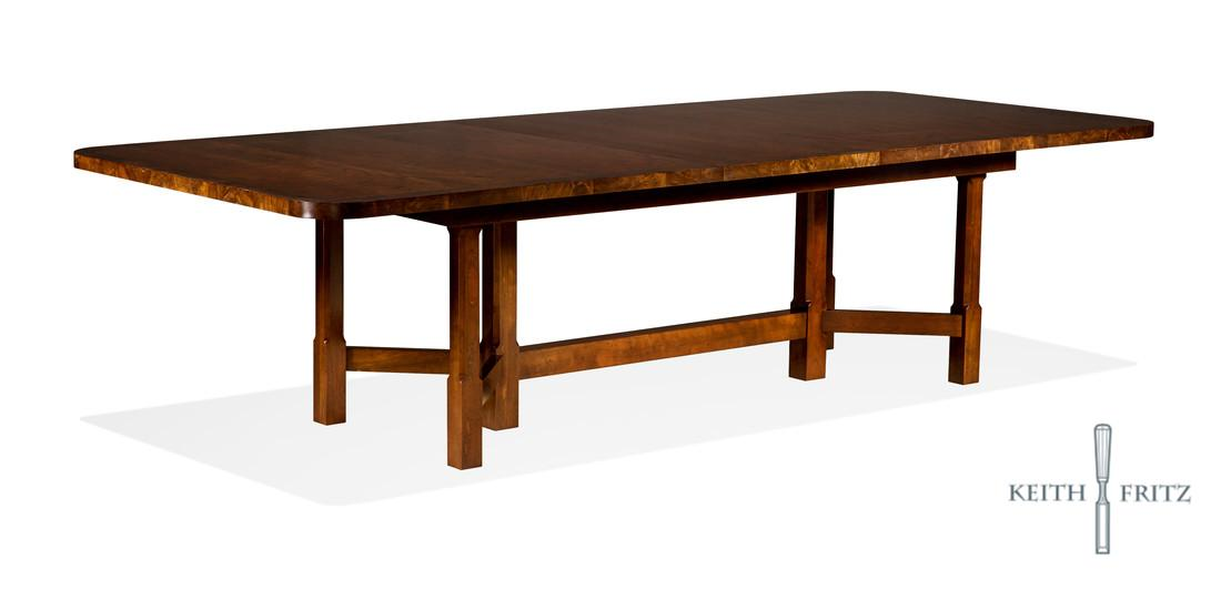 This custom creation for Texas based designer Daily Howard is a modern interpretation of the venerable farmhouse table. Hand planed cherry wood in an antique finish is tastefully accented by a walnut swirl border and ebony inlay.Available in all sizes and finishes.