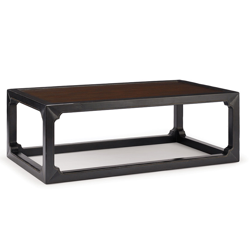 Description : Chinese coffee table with hand planed and partial planked walnut top and medium distressed gesso and carved base.