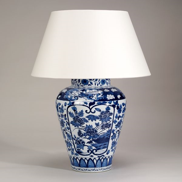The blue and white Imari is based on an original Japanese vase. Produced in the style of Kakiemon Arita porcelain, the hand-decorated pattern is underglazed in traditional cobalt blue.