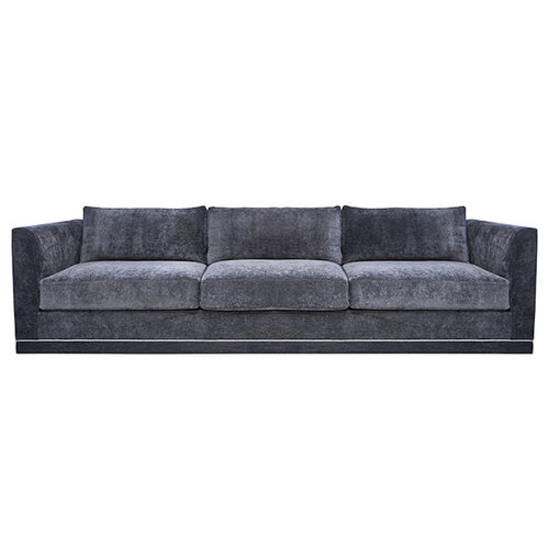 Standard upholstery featuring piping detail with loose seat and back cushions on a hidden wood base.