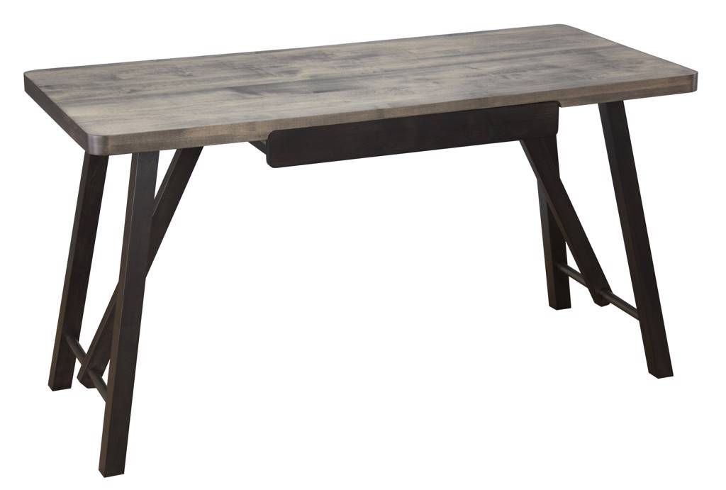 Desk with wood legs, steel rod strut construction, includes a pencil tray