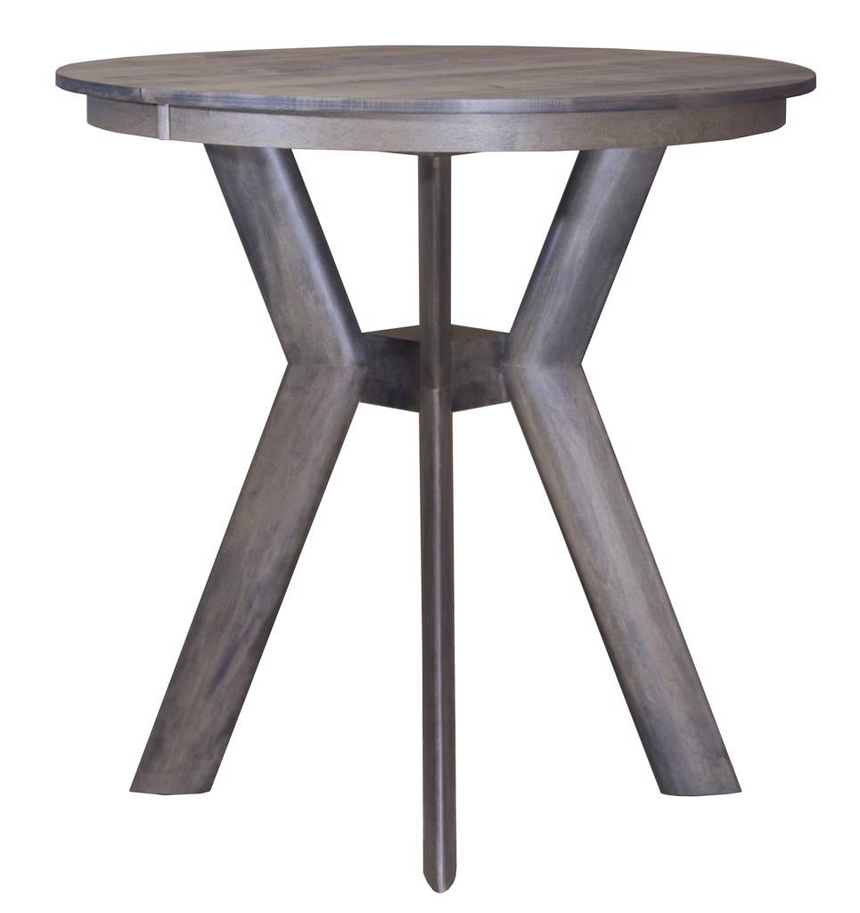 A solid maple bar-height table with a contemporary pedestal