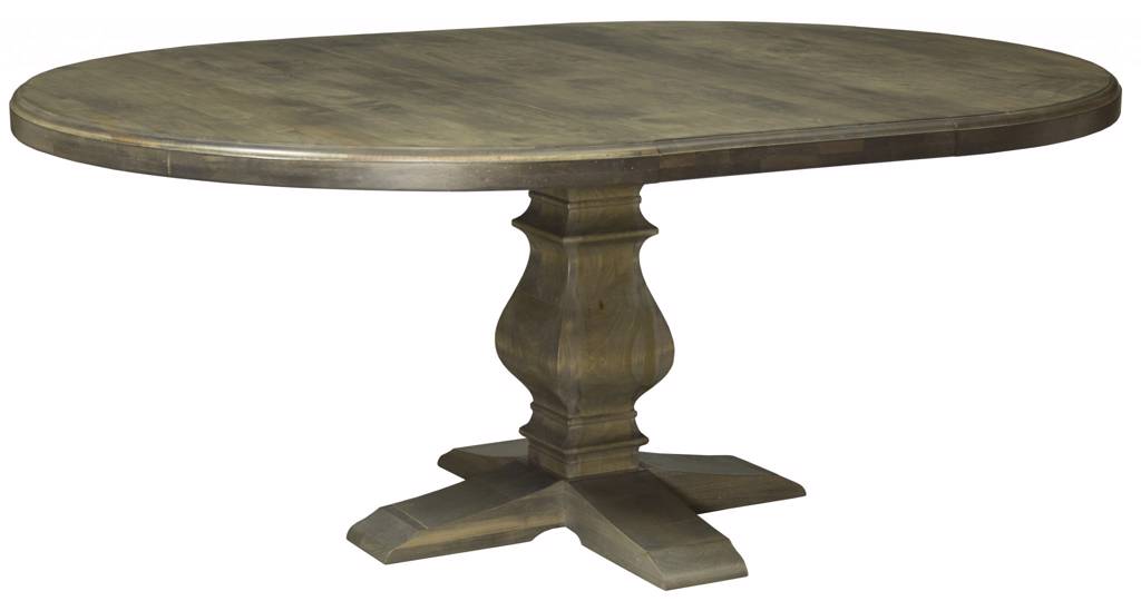 A sophisticated pedestal dining table featured in the New Castle Collection
