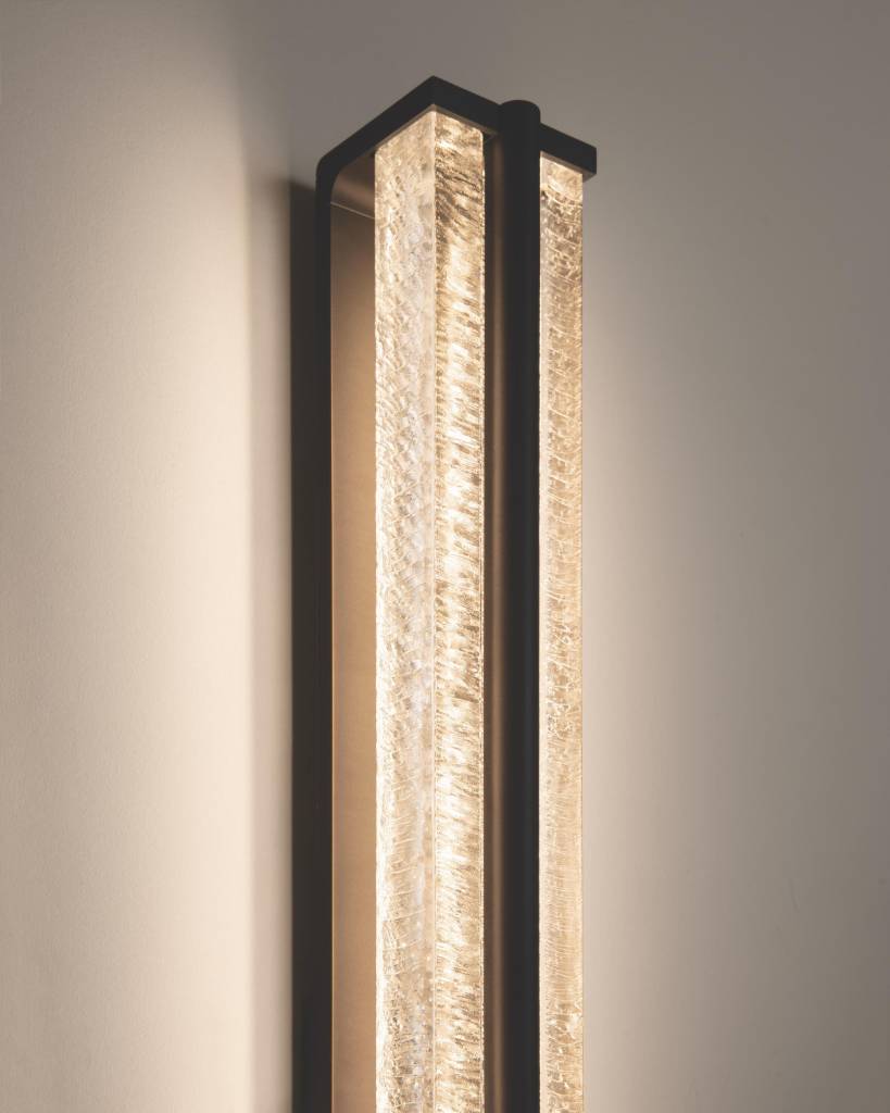 The wonderfully textured cast glass of the Kori Sconce emits a glow reminiscent of dripping icicles at night, inspiring its name which means “ice” in Japanese. These textures are complemented by a minimalist brass frame designed to support the glass with subtle negative space that creates a dreamy glow of light from behind, and the method of production ensures that each piece is unique.