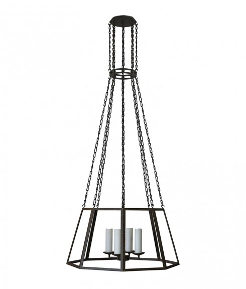 hand forged iron and chain with restoration glass panels