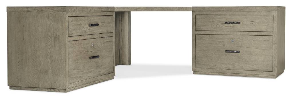 Product Description: The stylish symmetry of the Linville Falls Corner Desk will bring serenity to your life and productivity to your work. Capturing the essence of nature’s organic color palette on a clean-lined, simple silhouette, the unit is crafted of Oak Veneers with a soft smoked gray Mink finish, and combines a corner top with two flanking 36-inch tops. The unit’s functional appeal is enhanced by two lateral files with a total of four drawers, including two top utility drawers and two bottom locking file drawers with pendaflex filing systems. Fully finished on the back so it can be floated in a room.