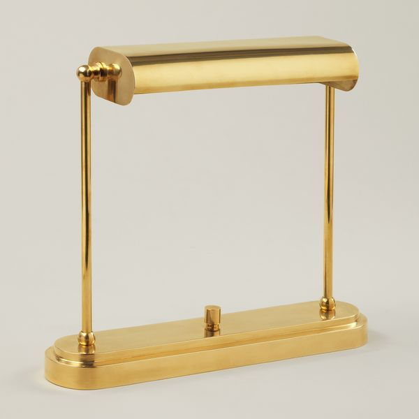 This is a versatile lamp, the shade can be angled and adjusted to create a variation of lighting moods. The shallow design is perfect for a shelf, bookcase or desk.