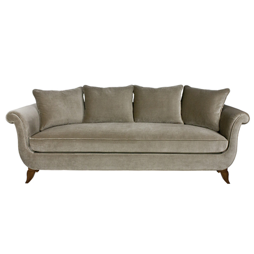 Standard scrolled arm upholstery with bench seat cushion and loose back pillows