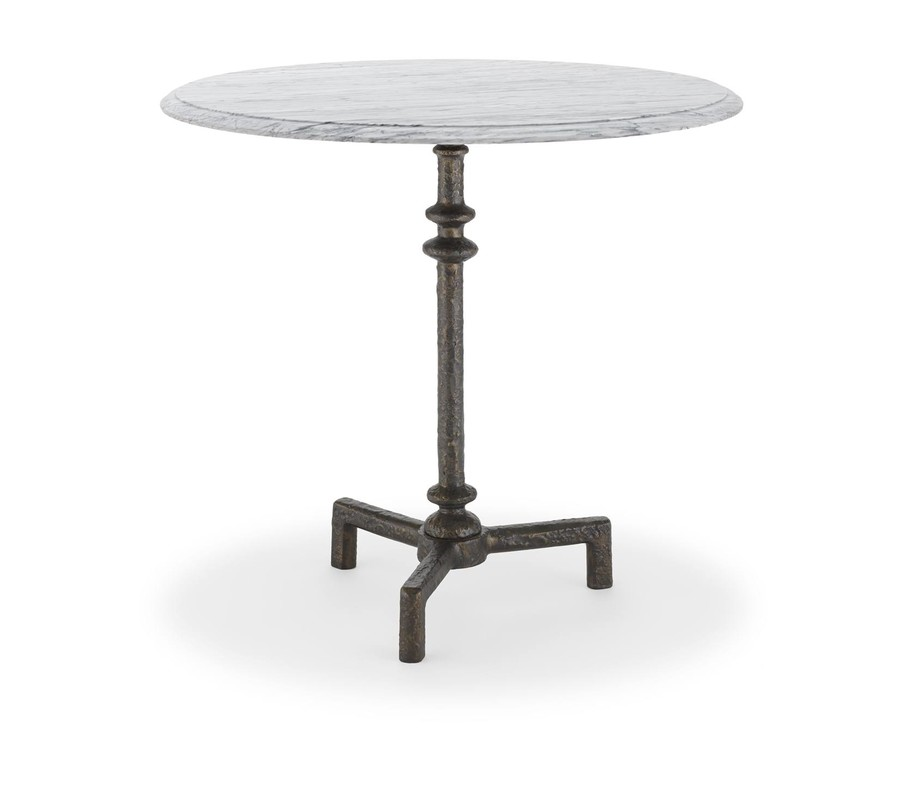 Description : Textured iron base side table with honed Bardiglio marble top included.