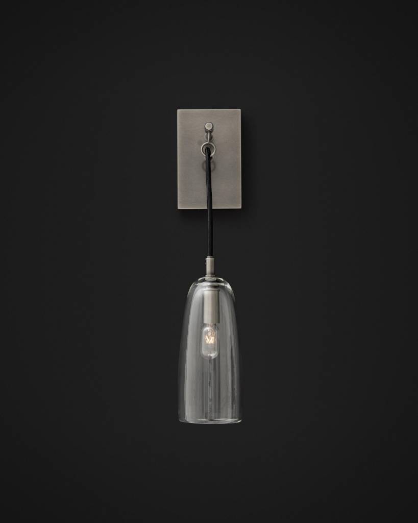 Alison Berger was inspired to create the Lure Sconce after studying the flow of a fishing line, from the mechanics of the reel that releases it to the form it takes when it hangs from a rod. The mouth-blown, hand-formed crystal shade is exceedingly delicate. It is attached to a backplate via a cord threaded through a loop that mimics the way fishing line threads through a rod. This sconce is blown in Berger’s Los Angeles atelier and annealed for several days before being finished by hand. Each is truly one of a kind.