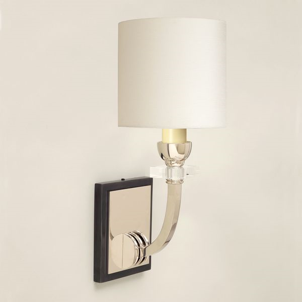 Inspired by the 1940s golden age of glamour, this wall light is modern in style. The arm gracefully meets the backplate and complements the decorative candle cups and distinctive square crystal bobeche detailing.