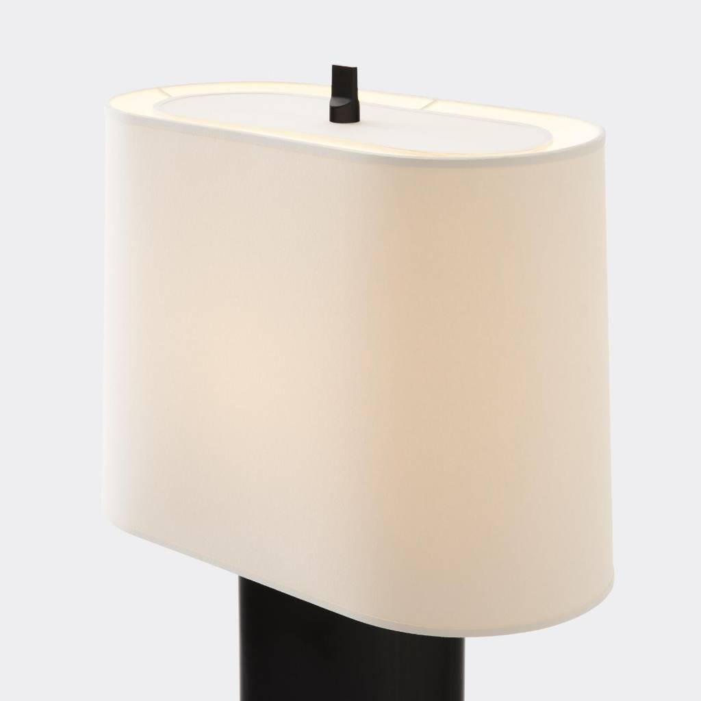 Marlowe is a handcrafted lamp with a hand-applied patina finish that creates unique surface treatments that subtly reveal themselves with the light. The aquarelle shade is substantial but narrower than a typical drum shade, which creates a beautifully proportioned appearance and allows it to be used in often-challenging shallow spaces, including consoles and nightstands.