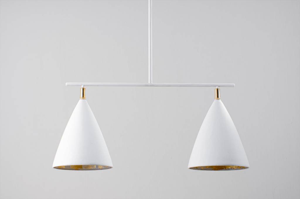 Boasting a sleek cone shape with brass detailing, the Matilda family is simple and elegant, available as both a wall and ceiling light. The cup is etched with gold providing a soft golden light. Each piece is cast and carefully finished by hand in our painting studio.