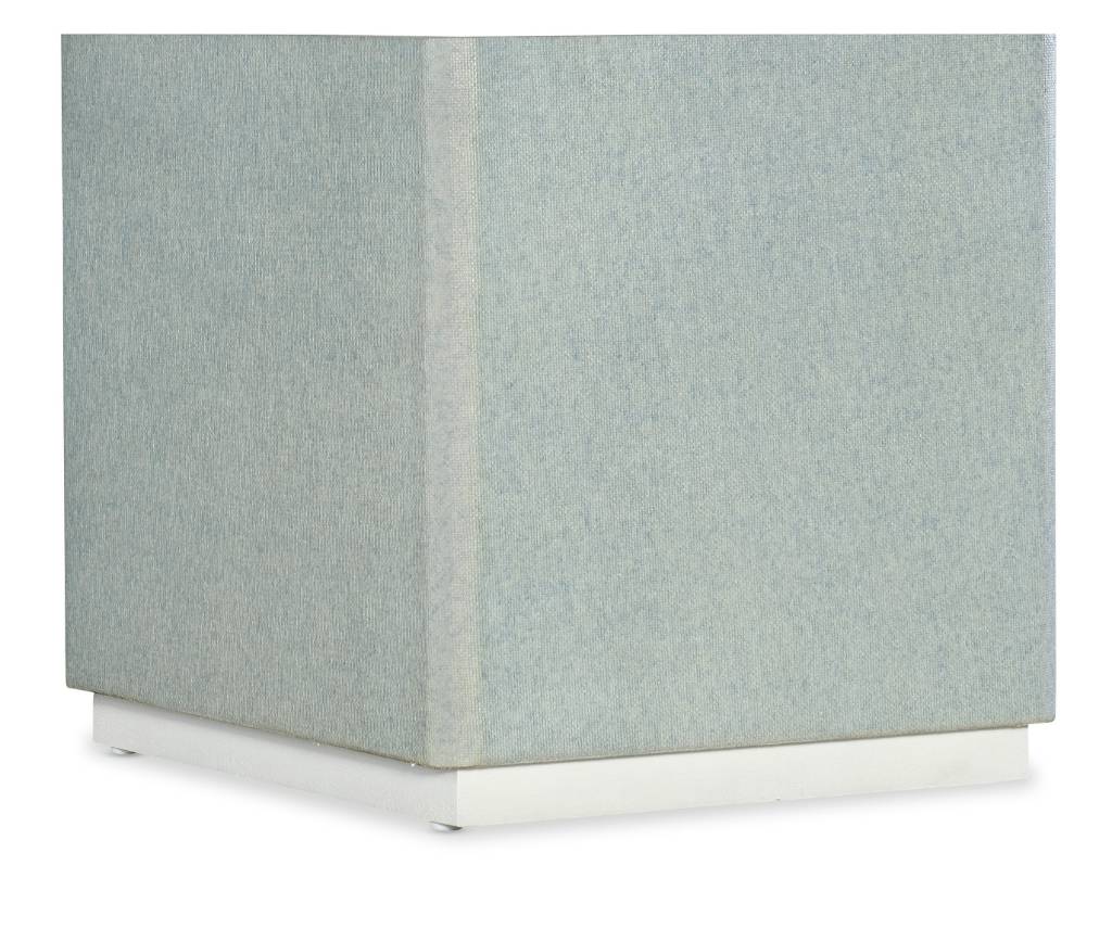 Product Description: Serene and stylish with a spa-like color scheme, the modern rectangle-shaped Atlantis End Table has rounded corners, a painted tempered glass top, raffia-wrapped exterior and white plinth base. The top is painted in a creamy white, and the raffia wrap is in a pale blue tone inspired by Caribbean beaches.