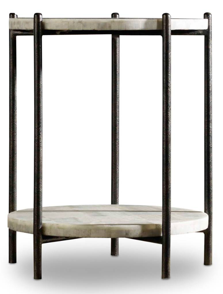 Product Description: Industrial meets organic with the chic and couture Blythe Accent Table, combining an alluring White Onyx top and bottom shelf with patterned veining with 5 slender metal legs. At only 18W by 18D, this versatile piece will add character even to small spaces.