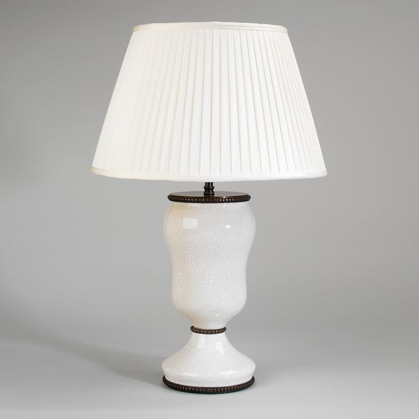 Based on an antique Victorian lamp, the bronzed brass beaded detailing adds character to the beautifully rounded ceramic vase. The crackle glaze adds texture.Glazed Ceramic (Ivory )