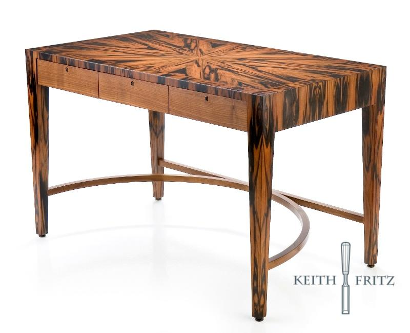 Available in all woods and finishes Available with sunburst pattern top as shown or “book and butt†pattern Available as shown in two wood species or all in one Desk sizes: T-06-1301-48 48â€W x 27â€D x 30â€H T-06-1303-60 60â€W x 30â€D x 30â€H T-06-1303-72 72â€W x 36â€D x 20â€H Console/sofa table sizes: T-06-1304-48 48â€W x 18â€D x 30†or 36â€H T-06-1306-60 60â€W x 18â€D x 30†or 36â€H
