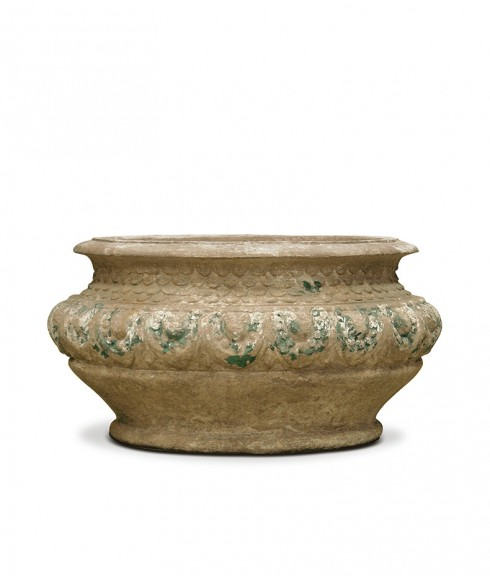overall dimensions: 24”dia x 12”h interior at top 15½”dia x 11½”h interior at bottom: 11”dia x 11½”hindoor/outdoorstandard size only81 lbsantique stone polychromecast stone