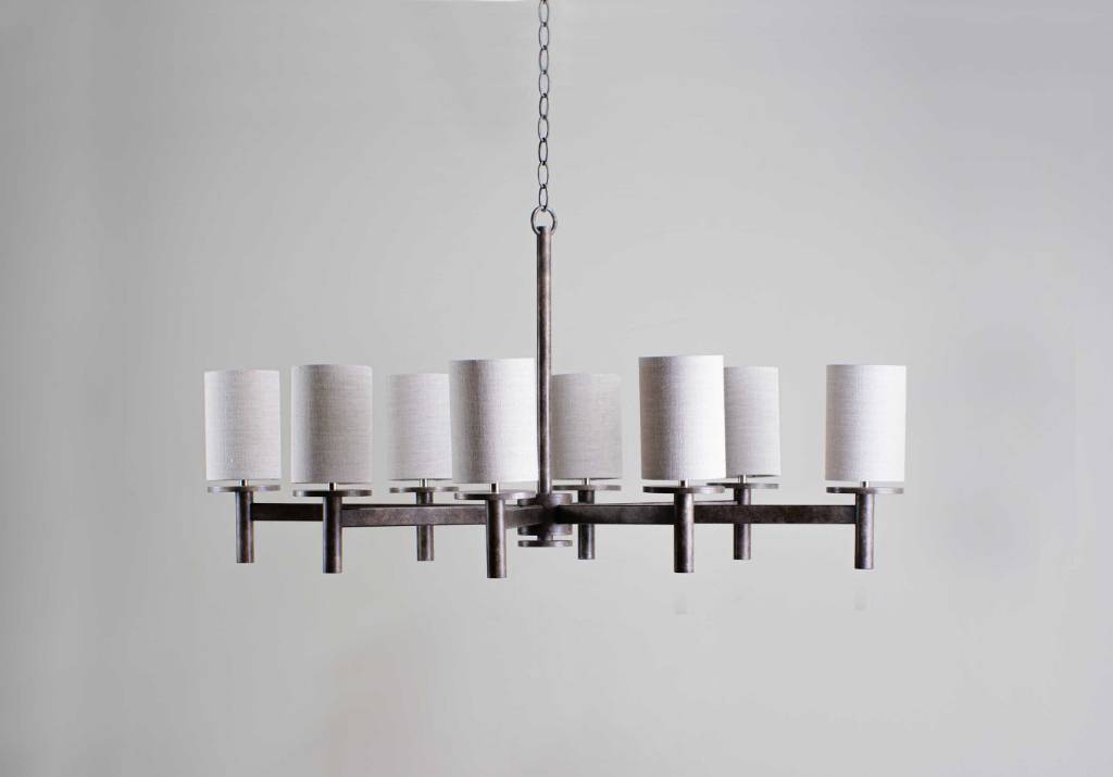 The linear struts of the Neptune Chandelier are symmetrically placed to provide an even distribution of light. The Small Neptune was designed for more intimate spaces with limited headroom. This design can be custom sized.